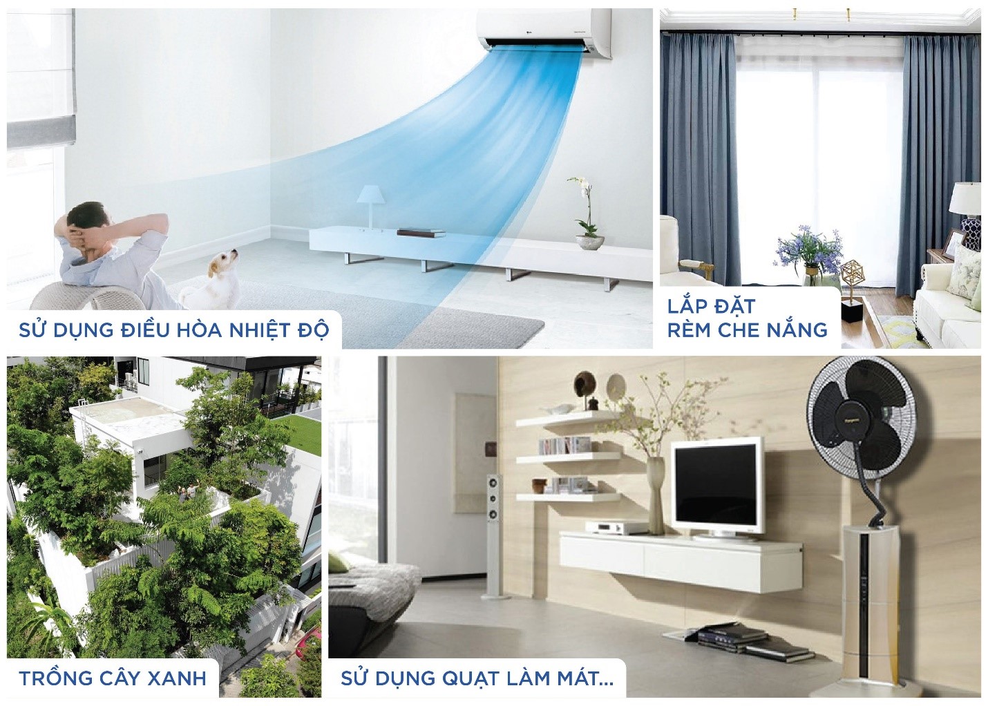 Trong tiết trời mùa hè nóng nực hầu hết mọi gia đình đều lựa chọn cho mình giải pháp tránh nóng bằng những thiết bị vật lý, nhà nhà sắm điều hòa, máy lạnh, quạt,... Một số gia đình chống nắng nóng mùa hè qua việc trồng cây xanh, kéo rèm cửa tránh ánh nắng chiếu vào hay thay đèn sợi đốt bằng đèn compact,... Đó là những cách chống nắng trực tiếp mà mọi người đang sử dụng. Với những ngày nắng nóng gay gắt dài ngày của mùa hè, việc sử dụng các thiết bị vật lý cả ngày đã kéo theo những hóa đơn tiền điện “ác mộng” cho các gia đình và đôi phần ảnh hưởng tới không khí môi trường hiện nay.