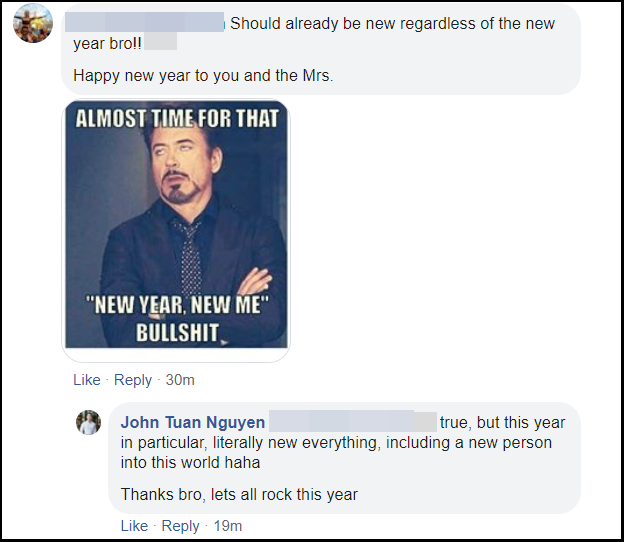 Tuy nhiên mới đây ông xã đại gia Tuấn John lại vừa tiết lộ một cách ẩn ý trên trang cá nhân của mình việc anh đang có tin vui đặc biệt. Theo đó, trong một dòng trạng thái mừng năm mới, Tuấn John đã vui mừng chia sẻ: "True, but this year in particular, literally new everything, including a new person into this world haha" (Tạm dịch: Đúng thế, nhưng năm nay nói riêng, mọi thứ mới theo đúng nghĩa đen. Bao gồm cả việc có một người mới bước vào thế giới này.).
