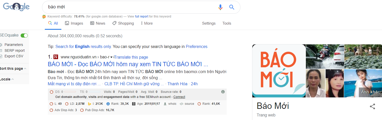 Theo đó, khi người dùng gõ bất kỳ từ khóa nào liên quan đến trang Báo Mới, đều không ra kết quả hiển thị tìm kiếm nào trên google.com.vn. Mọi thông tin liên quan đến trang tổng hợp tin tức này dường như đã không còn "tồn tại".