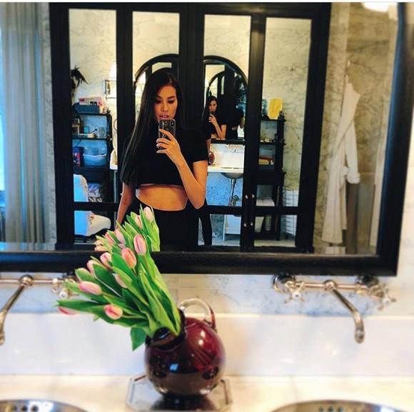 Thời gian gần đây, hoa hậu gốc Hải Phòng cũng chia sẻ bức ảnh diện đồ tập sexy, để lộ chân ngực đầy hờ hững nóng bỏng và vòng eo thon thả. Bức ảnh nhanh chóng nhận về hàng nghìn lượt yêu thích và những bình luận trầm trồ trước nhan sắc Hoa hậu.