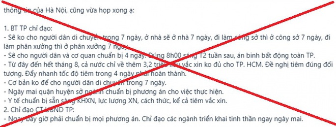 Ngày 20/8, mạng xã hội lan truyền thông tin có nội dung: "Sẽ không cho người dân di chuyển trong 7 ngày; ở nhà sẽ ở nhà 7 ngày, đi làm công sở thì ở công sở 7 ngày, đi làm phân xưởng thì ở phân xưởng 7 ngày. Đúng 8h sáng thứ 2 tuần sau, án binh bất động toàn thành phố…".