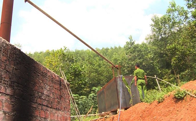 Trước đó, vào khoảng 10h ngày 5/10, phòng Cảnh sát môi trường Công an tỉnh Hà Tĩnh phối hợp với Công an huyện Hương Sơn bất ngờ bắt quả tang một xưởng sản xuất đang tái chế dầu nhớt thải tại thôn Hòa Tiến, xã Sơn Tiến, huyện Hương Sơn. Cơ sở tái chế này do ông Lê Đình Cường (36 tuổi) trú tại xã Sơn An, huyện Hương Sơn làm chủ.