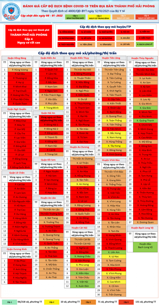 Theo thông tin CDC Hải Phòng, cấp độ dịch toàn thành phố là cấp độ 4, nguy cơ rất cao.