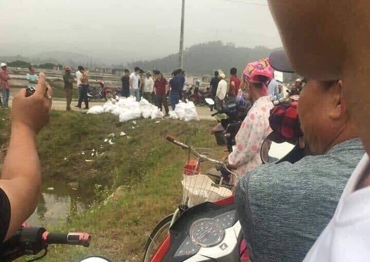Trước đó như đã đưa tin, vào khoảng 8h ngày 17/4, người dân địa phương phát hiện hàng chục bao tải bên cánh đồng muối, đoạn tiếp giáp Quốc lộ 48B xuống cảng cá Lạch Quèn, xã Quỳnh Thuận.