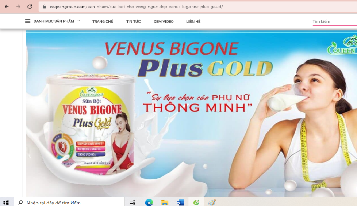 Tiếp đó là sản phẩm sữa bột Venus bygone plus gold, để sản phẩm này mau chóng được khách hàng chọn lựa, công ty này đã không ngần ngại đưa ra những lời quảng cáo và in ngay cả trên bao bì sản phẩm nhằm quảng bá tối đa công dụng cũng như chức năng của các sản phẩm này, cụ thể là: “Sữa bột Venus bygone là sản phẩm giúp cho người dùng săn chắc vòng 1; Tái tạo da – sáng da và chống lão hóa”.