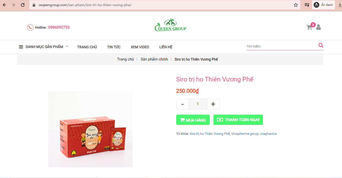 Theo chị H, một khách hàng cho biết: “Tôi bị viêm họng và ho dai dẳng trong một thời gian dài. Sau khi xem tư vấn tại trang web Ceqeengroup.com, tôi đã đặt mua sản phẩm Siro trị ho Thiên Vương Phế về sử dụng. Trên nhãn của sản phẩm ghi là trị ho khiến tôi lầm tưởng đây là thuốc chữa bệnh. Tuy nhiên, sau một thời gian sử dụng không thấy đỡ nên tôi phải mua thuốc kháng sinh để điều trị”.