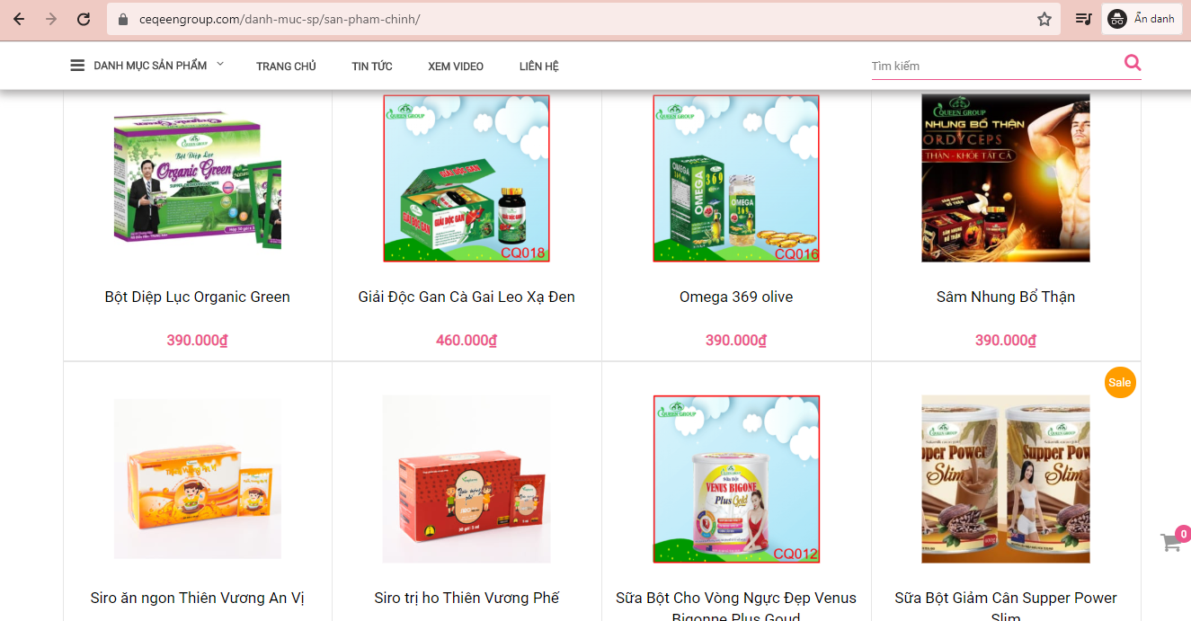 Ngoài ra, trên website này còn đăng tải gần 20 sản phẩm như bột giảm cân Supper Power Slim, sữa bột hồng sâm Ngọc linh nhụy hoa nghệ tây, sữa nghệ Nano Curcumin Q10, sữa bột linh chi đỏ, sữa bột Natto Enzym, siro trị ho Thiện Vương Phế, sữa bột Venus bygone plus gold …