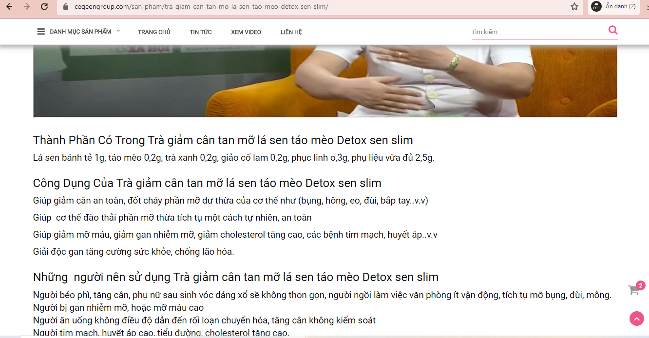 Tương tự như chị H., một khách hàng đang dùng sản phẩm trà giảm cân, tan mỡ lá sen táo mèo Detox sen slim của công ty CP thương mại Quốc tế CQueen Group Việt Nam cho biết: "Tôi muốn giảm cân, sau khi thấy trên website Ceqeengroup.com có quảng cáo loại trà này có tác dụng giảm cân, chống lão hóa, tôi đã đặt mua hàng nhưng sau khi sử dụng sản phẩm này một thời gian, tôi không thấy có tác dụng rõ ràng".