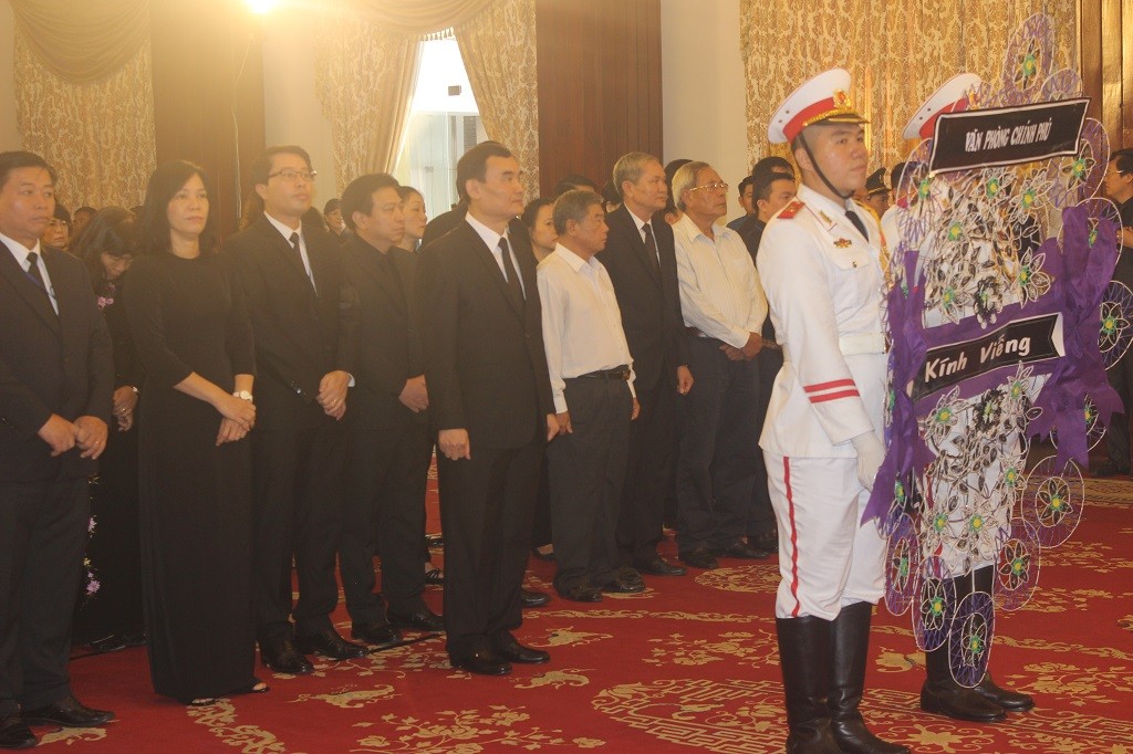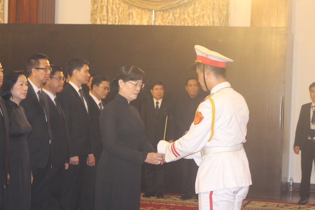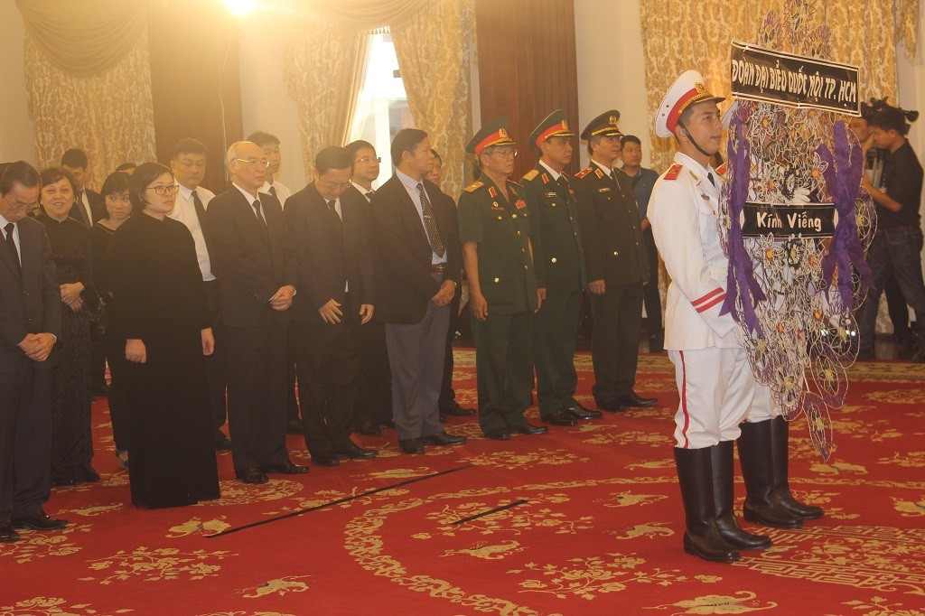 Ngoài lãnh đạo Đảng, Nhà nước tại TP.HCM, đoàn viếng còn gồm Văn phòng Chính Phủ tại phía Nam, bộ Công an phía Nam, bộ Y tế, lãnh đạo các tỉnh, thành phía Nam… cũng đến viếng Chủ tịch nước.