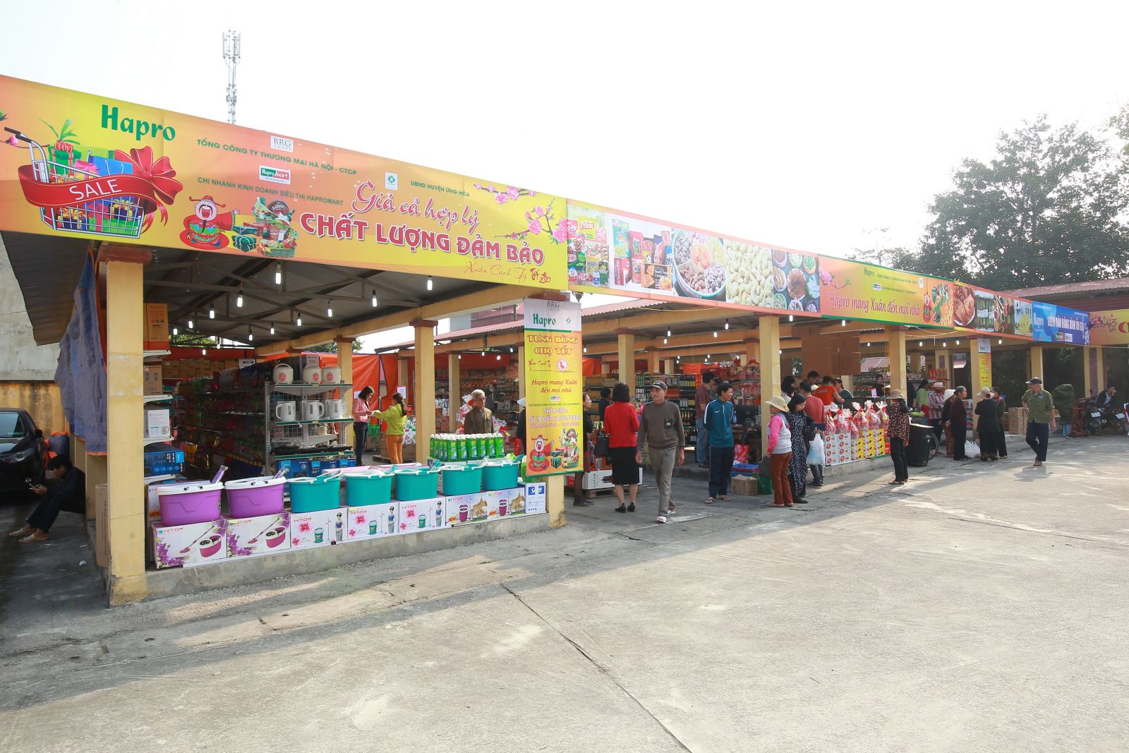 Với chủ đề “Hapro mang xuân đến mọi nhà”, điểm bán hàng theo mô hình “Chợ tết” của Tổng công ty Thương mại Hà Nội triển khai nhằm mang đến nhân dân các Huyện ngoại thành Hà Nội hương vị Tết ấm áp với nhiều sản phẩm phục vụ Tết cổ truyền dân tộc như: Bánh trưng; Giò các loại của Công ty Thực phẩm Hà Nội; Rượu vang Thăng Long; sản phẩm Bánh mứt kẹo tết của Công ty Thuỷ Tạ, Xí nghiệp bánh mứt kẹo Hà Nội, Hữu nghị, Kinh Đô; các sản phẩm gạo, hạt điều mang thương hiệu Hapro; các sản phẩm đầy ắp hương vị tết của các Công ty Trung Thành, Bia Hà Nội,…; Đồ gia dụng thiết yếu,…
