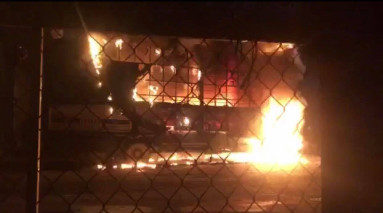Chỉ vài giây sau một trong hai đối tượng trên quay lại sát chiếc xe, trên tay cầm vật nghi giống bom xăng rồi ném thẳng vào gầm chiếc xe ô tô đang đỗ phía bên phải khiến chiếc xe bùng cháy. Và ngọn lửa nhanh chóng bao trùm toàn bộ chiếc xe, lan nhanh ra chiếc xe bên cạnh, cháy bén lên dây điện, dây cáp phía trên,…