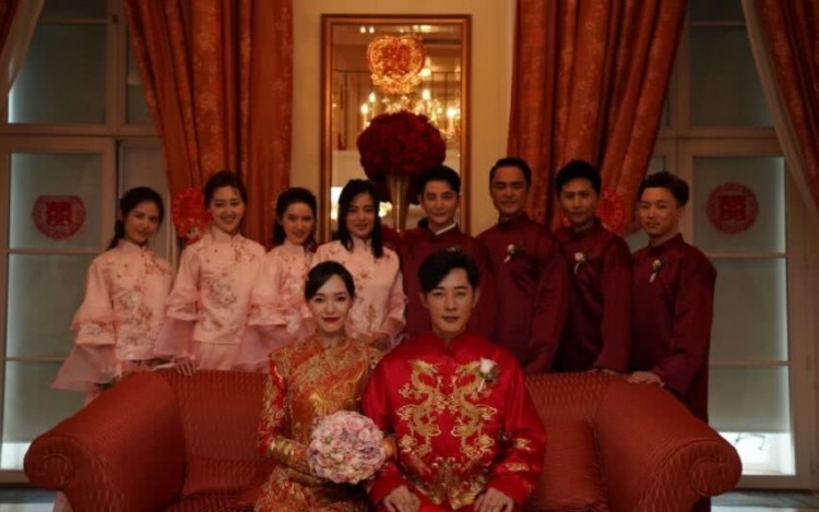 Trong khi dàn phù dâu với sự góp mặt của những cô nàng xinh đẹp thì dàn phù rể cũng không hề kém cạnh khi La Tấn đã mời về những cái tên như Tôn Kiên, Biên Giang, Minh Đạo… Tân lang tân nương hợp nhất thành một, cùng với La Tấn Đường Yên trong bộ lễ phục theo đúng truyền thống của Trung Quốc vui vẻ chụp hình cùng nhau.