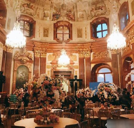 Trong ngày cưới của Đường Yên, khắp cung điện Belvedere tràn ngập hoa và bóng bay. Các khách mời được rước vào lễ đường bằng xe ngựa. Được biết, giá thuê của cung điện là 1.500 euro/ 1 giờ (khoảng gần 40 triệu VNĐ).