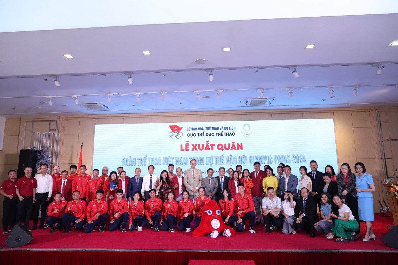 Đoàn Thể thao Việt Nam gồm 39 thành viên, trong đó có 16 vận động viên (thuộc 11 môn thể thao), 16 huấn luyện viên và chuyên gia cùng 2 bác sĩ, các cán bộ đoàn, do ông Đặng Hà Việt, Cục trưởng Cục Thể dục thể thao làm Trưởng đoàn sẽ lên đường tham dự Olympic Paris.