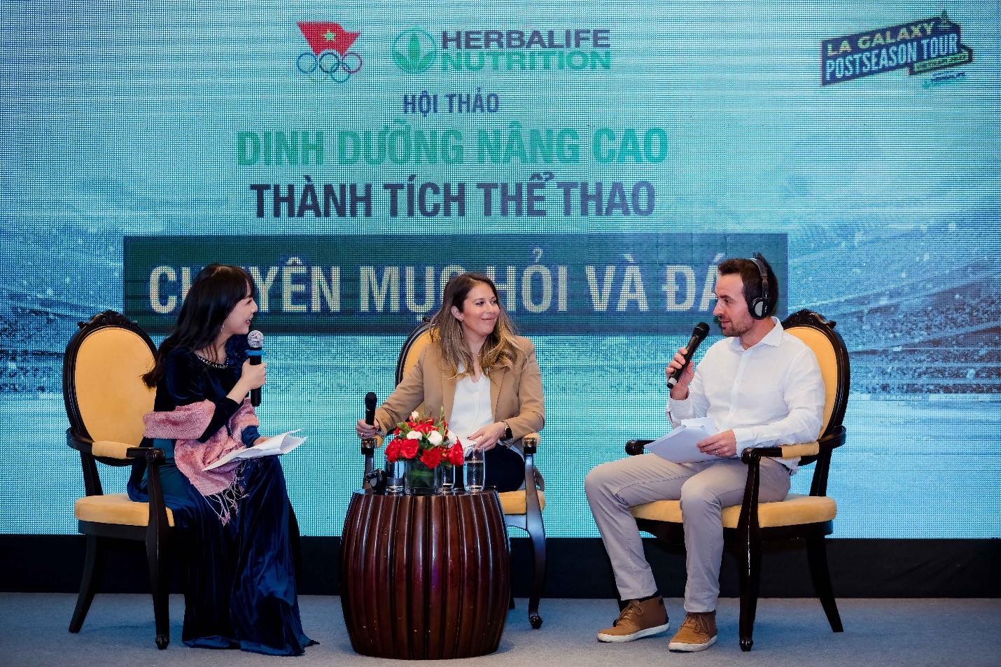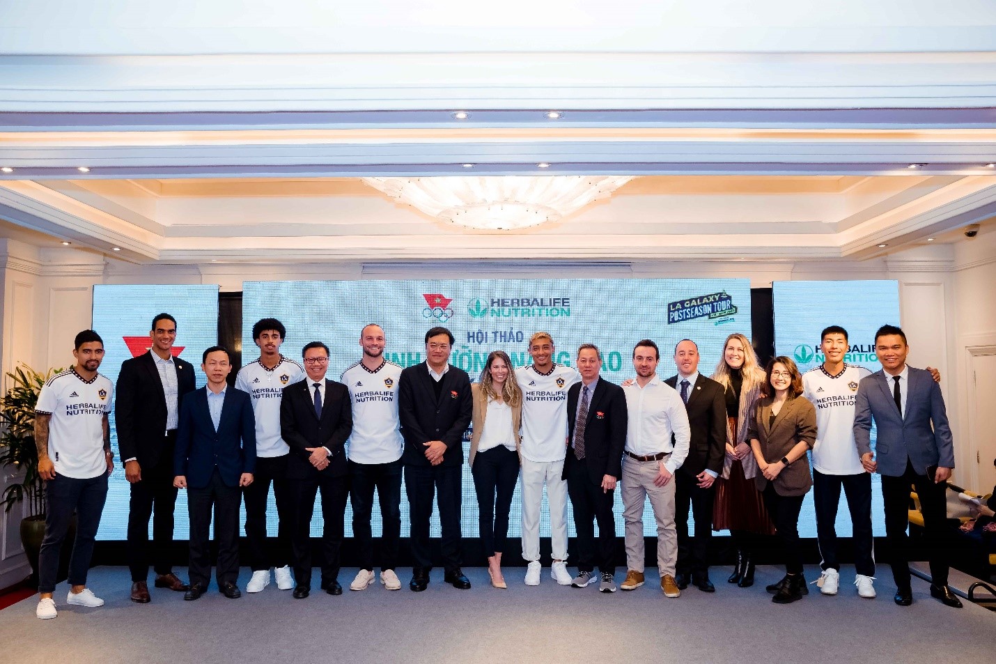 Buổi hội thảo “Dinh dưỡng nâng cao - Thành tích thể thao” còn có sự hiện diện của các cầu thủ của CLB LA Galaxy. Đại diện cho đội bóng, 2 hậu vệ Chase Gasper và Julian Araujo cũng có những chia sẻ về chế độ tập luyện và dinh dưỡng hàng ngày để đảm bảo thể chất cho việc thi đấu tại MLS.