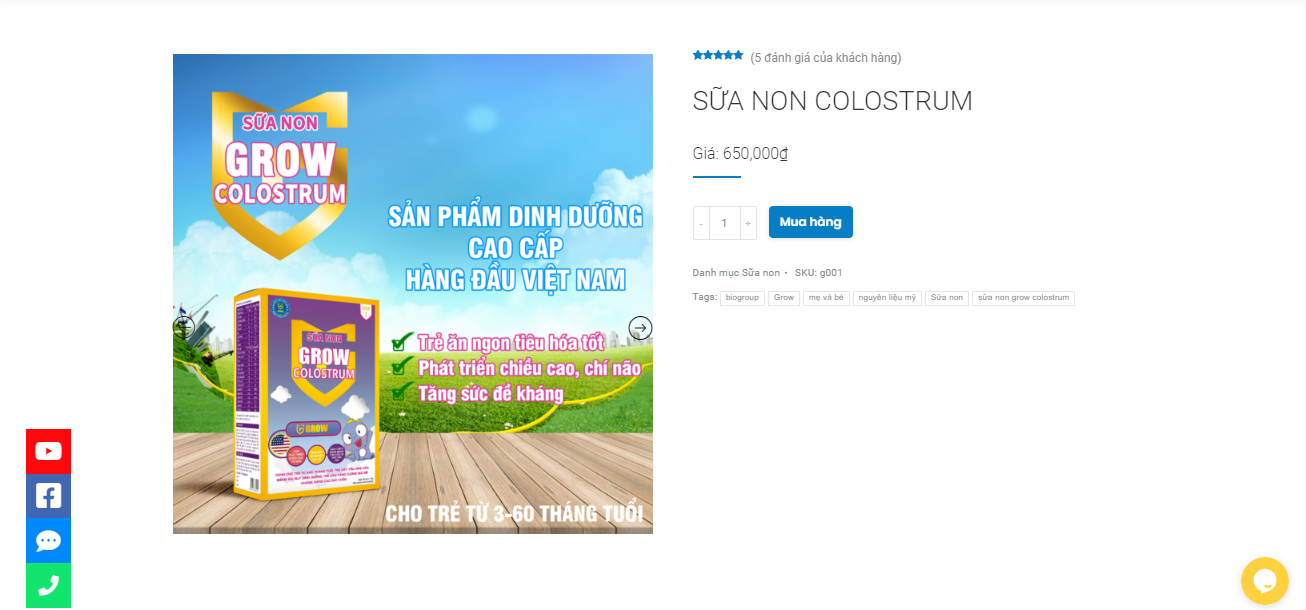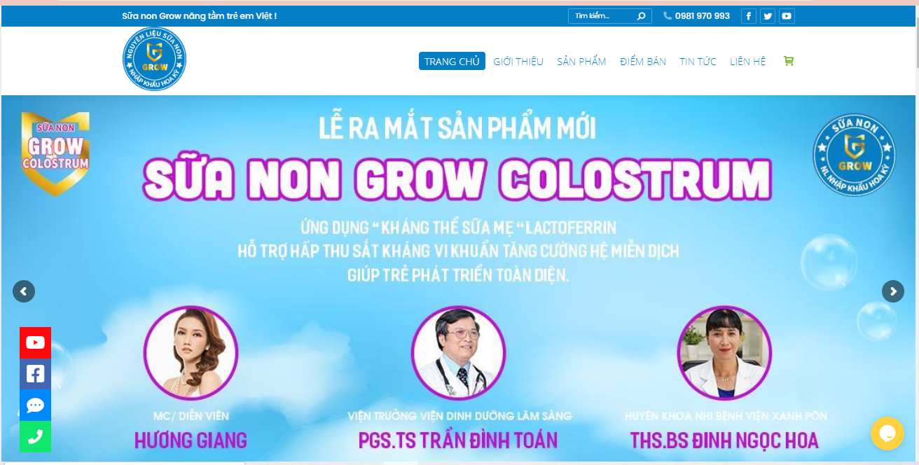Để thu hút khách hàng, trên website suanongrow.com đã dùng hình ảnh bác sĩ Đinh Ngọc Hoa – Chuyên khoa nhi bệnh viện Xanh Pôn để quảng cáo sản phẩm sữa non Grow Colostrum.