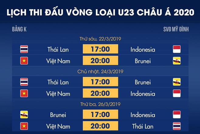 Để gặp U23 Thái Lan, U23 Indonesia đội tuyển U23 Việt Nam sẽ gặp Brunei ở trận ra quân của vòng loại giải U23 châu Á, thầy trò Park Hang-seo bắt buộc giành 3 điểm và phải thắng đậm để cạnh tranh với hai đối thủ mạnh còn lại.
