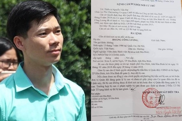 Theo lệnh mới do Cơ quan CSĐT Công an tỉnh Hòa Bình ban hành, bác sỹ Hoàng Công Lương chỉ được phép cư trú tại thành phố Hòa Bình từ ngày 10/10/2018 đến ngày 28/11/2018.