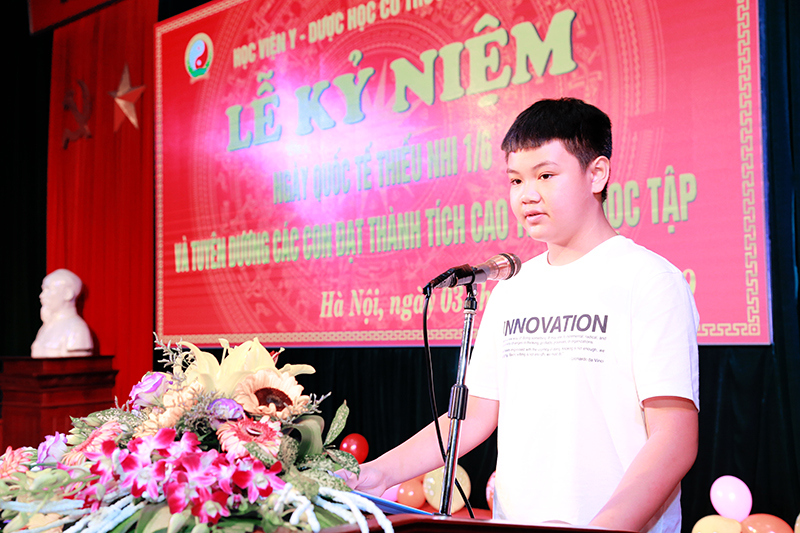 Tại Lễ kỉ niệm, PGS.TS. Phạm Quốc Bình - Phó Giám đốc Học viện thay mặt lãnh đạo Học viện chúc tất cả các cháu luôn khỏe mạnh, học giỏi, nghe lời bố, mẹ, thầy, cô, để trở thành người có ích cho xã hội.