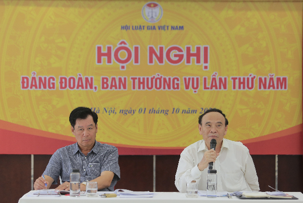 Bên cạnh đó, ông Trần Đức Long, Ủy viên Đảng đoàn, Phó Chủ tịch hội Luật gia Việt Nam trình bày báo cáo công tác chuẩn bị tổ chức đại hội Thi đua yêu nước hội Luật gia Việt Nam lần thứ III (tổ chức sáng 2/10/2020).