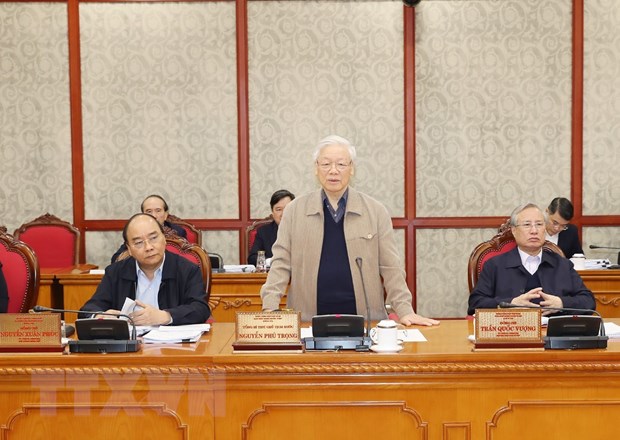 Cùng dự họp có các đồng chí Ủy viên Bộ Chính trị: Thủ tướng Chính phủ Nguyễn Xuân Phúc, Chủ tịch Quốc hội Nguyễn Thị Kim Ngân, các đồng chí Bí thư Trung ương Đảng, đại diện Thường trực Tổ Biên tập của các Tiểu ban Đại hội XIII của Đảng và lãnh đạo các cơ quan liên quan.