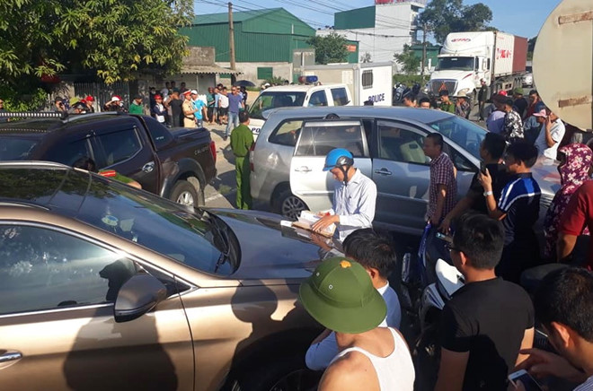 Tại hiện trường, hai ôtô tông ép sát vào nhau, có nhiều mảnh vỡ vương vãi khắp mặt đường. Công an thu giữ một khẩu súng cùng nhiều tang vật liên quan.