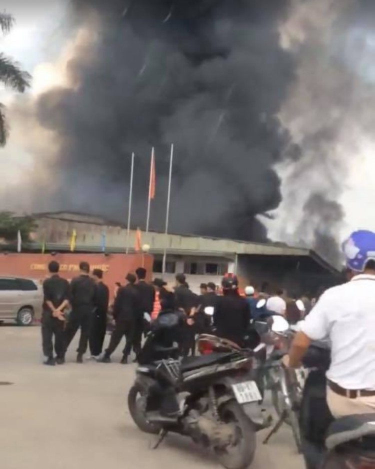 Sau gần 30 phút, khói đã bao trùm toàn khu vực và có nguy cơ lan sang các khu dân cư, khiến lực lượng cứu hỏa tại chỗ không thể phản ứng kịp. Nhiều công nhân hốt hoảng chạy ra ngoài.