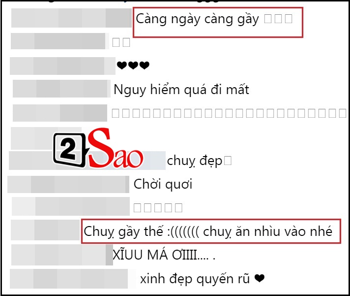 Ngoài gương mặt khá nhợt nhạt và thiếu sức sống, Hương Giang còn bị soi hình thể "một mẩu" trong bức ảnh tắm bồn. Nhìn vòng lưng bé tẹo, cánh tay "que củi" của cựu Hoa hậu Chuyển giới Quốc tế, fans không khỏi xót xa: "Gầy quá chị ơi"; "Chị ơi gầy quá rồi"; "Tăng cân thêm chị ơi thì sẽ gợi cảm hơn"...