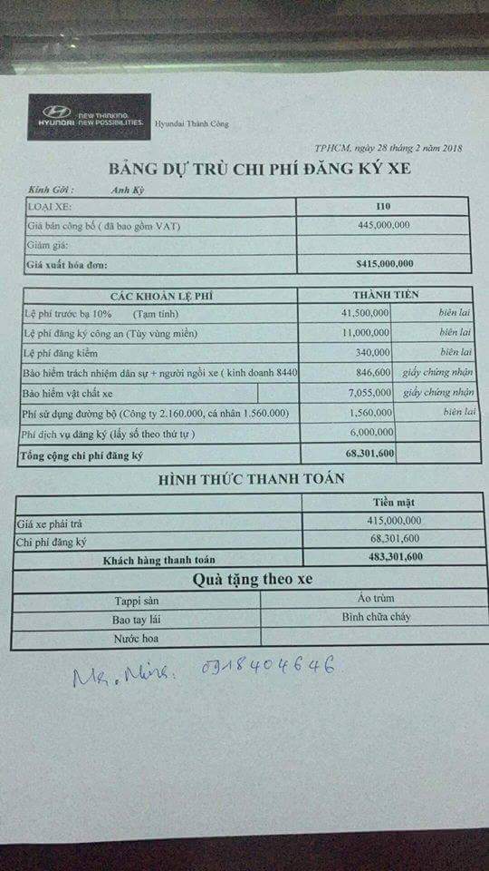 Để làm rõ vấn đề này, chị H. đã tìm tới Huyndai Gia Định nhiều lần yêu cầu cung cấp bảng thanh toán chi tiết và được cung cấp một bảng thông tin thanh toán sai.