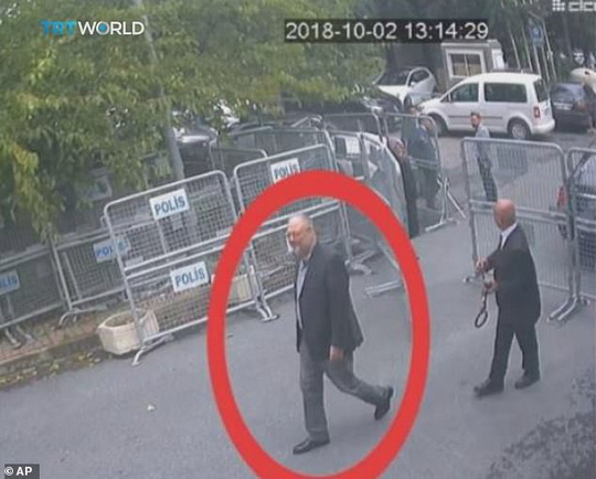 Hãng thông tấn AP (Mỹ) ngày 22-10 đưa tin những hình ảnh CCTV vừa nổi lên cho thấy một sỹ quan tình báo Ả Rập Saudi đeo râu giả và mặc quần áo, đeo kính của nhà báo Jamal Khashoggi – người đã biến mất sau khi tới Lãnh sự quán Ả Rập Saudi tại Istanbul – Thổ Nhĩ Kỳ hôm 2-10.