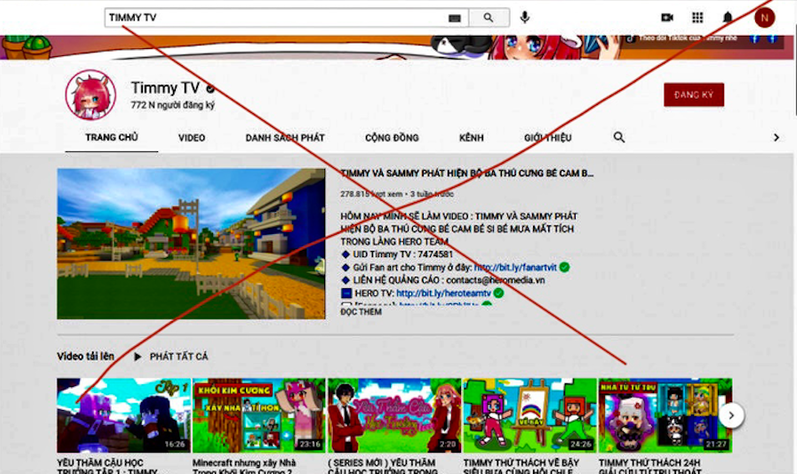 Trước đó, ngày 17/5, Cục Trẻ em (bộ LĐ-TB&XH) đã có văn bản đề nghị cục An toàn thông tin (bộ TT&TT) xác minh, xử lý kênh Timmy TV vì đăng tải thông tin tác động xấu đến trẻ em.