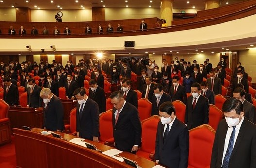 Trước khi tiến hành chương trình Hội nghị, Trung ương đã dành 1 phút mặc niệm đồng bào, đồng chí, chiến sĩ hy sinh, từ trần vì dịch bệnh COVID-19 vừa qua.