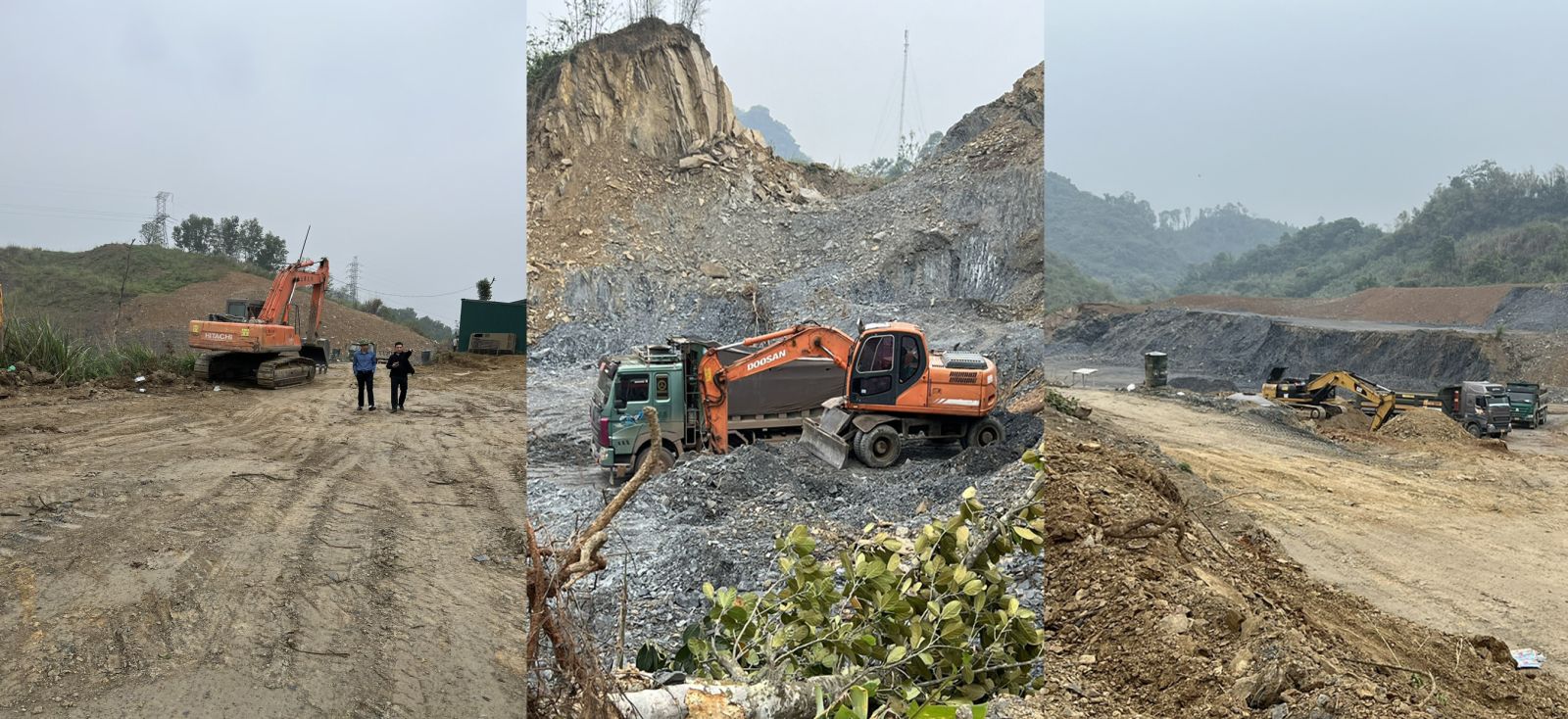 Quá trình kiểm tra, tổ công tác đã phát hiện có 2 máy xúc đang múc đất ở khu vực ngoài mỏ được cấp phép. Tại hiện trường còn có 12 xe ô tô tải đang tập kết tại khu vực mỏ để lấy đất trong đó có 1 xe có đất trên thùng xe.