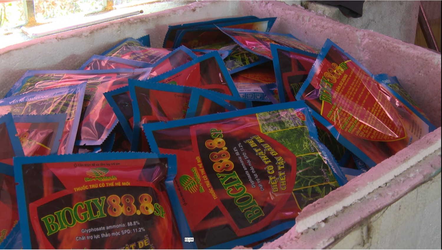 Ngoài ra, lực lượng chức năng còn phát hiện trong cốp xe ô tô biển kiểm soát 14A - 409.24 đỗ trong sân có 1.655 gói thuốc trừ cỏ mang nhãn hiệu BIOGLY88.8SP chuẩn bị được mang đi tiêu thụ. Tại thời điểm kiểm tra, 3 đối tượng trên không xuất trình được giấy tờ chứng minh nguồn gốc, xuất xứ, đồng thời tự nguyện giao nộp thêm 280 gói thuốc trừ cỏ giả mang nhãn hiệu BIOGLY88.8SP; 14 bao tải dứa hạt nêm Arion; 5.200 vỏ gói thuốc trừ cỏ giả nhãn hiệu BIOGLY88.8SP cùng một số đồ vật khác đang cất giấu tại nhà ông Hoàng Minh Trường, sát nhà Thảo.