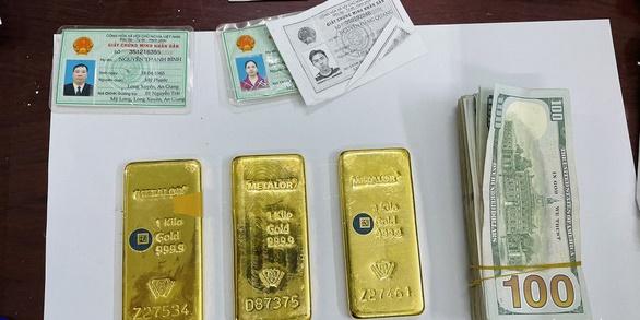 Tại hiện trường vụ việc, Công an tỉnh An Giang đã thu giữ 3 thỏi kim loại màu vàng (trọng lượng 3kg, nghi vấn vàng 9999 nhập lậu từ Campuchia), gần 170.000 USD và 700 triệu đồng.