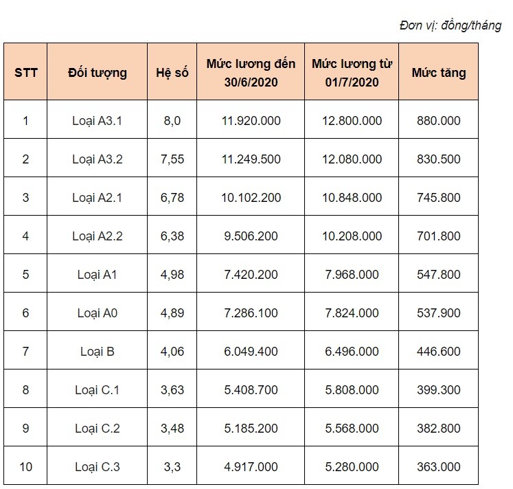 Trong đó, lương và phụ cấp cũng tăng lên, cụ thể: