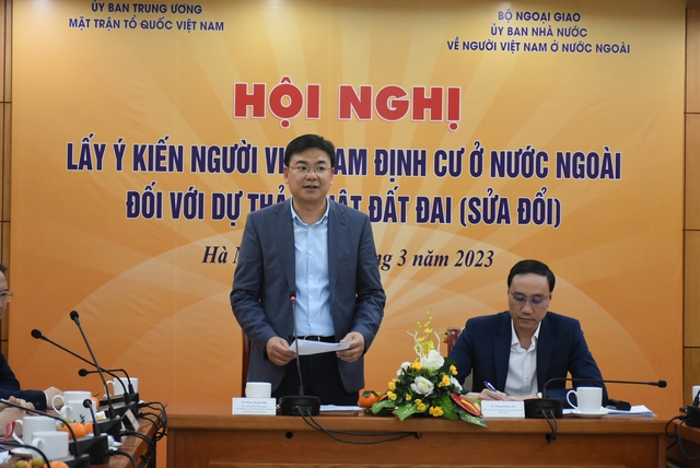 Trong quá trình xây dựng và từng bước hoàn thiện pháp luật về đất đai nói riêng và hệ thống pháp luật Việt Nam nói chung đang từng bước thể chế hóa những chủ trương, đường lối lớn của Đảng và Nhà đặc biệt là đối với người Việt Nam ở nước ngoài đều yêu cầu tạo mọi điều kiện thuận lợi cho người Việt Nam đang định cư ở nước ngoài. Việc lấy ý kiến rộng rãi đối với dự thảo Luật Đất đai (sửa đổi) cũng nằm trong chu trình đó để làm sao thể chế hóa đường lối của Đảng bằng các văn bản quy phạm pháp luật theo hướng phát huy hơn nữa nguồn lực người Việt Nam ở nước ngoài phù hợp với chủ trương đường lối chung của quá trình phát triển đất nước.