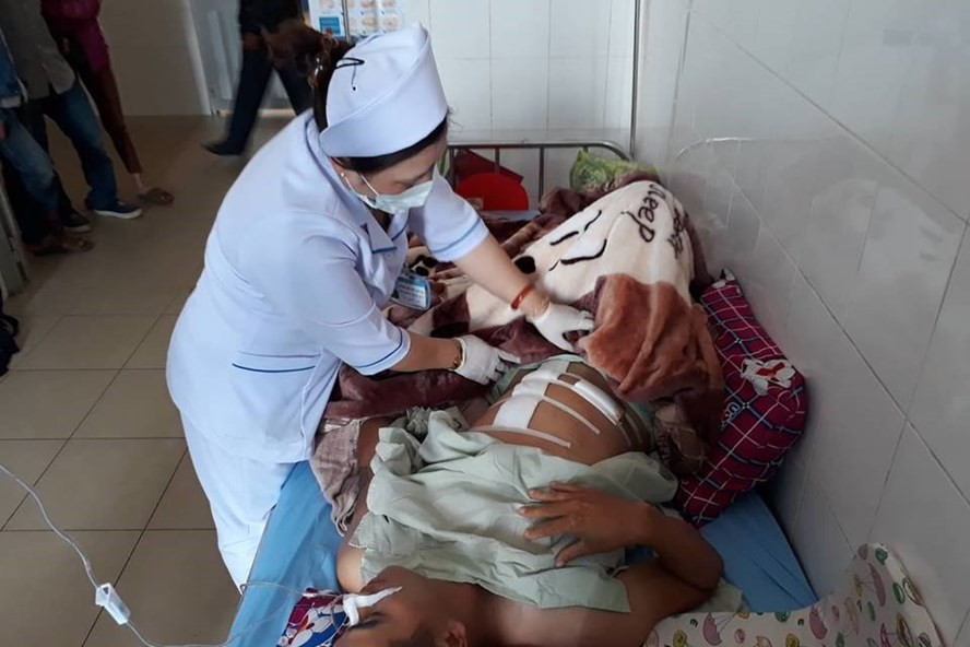 Trong lúc anh Kỳ đang kéo dây để phun xịt thì cảm thấy đau nhói vùng bụng, máu chảy, rồi ngã gục xuống đất. Mẹ anh phát hiện con trai nằm ôm bụng nên gọi người nhà đưa nạn nhân đi cấp cứu.