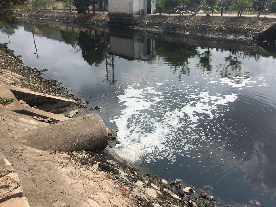 Thực tế theo PV ghi nhận, đường ống xả thải của Cụm Công nghiệp Vĩnh Niệm này xả trực tiếp ra kênh Tây Nam thứ nước vàng đen, kèm theo đó là bọt trắng chảy ngược về phía khu dân cư gần đường Hoàng Minh Thảo. Điều này khiến cả dòng kênh dài gần 2 km đổi màu, bốc mùi hôi thối, ảnh hưởng nghiêm trọng đến cuộc sống, sức khỏe của hàng trăm hộ dân. Khi mực nước xuống thấp, phía đáy kênh Tây Nam lộ ra một lớp bùn đặc quánh dày vài chục cm, là kết quả của việc lắng đọng chất thải qua nhiều năm mà không được xử lý.
