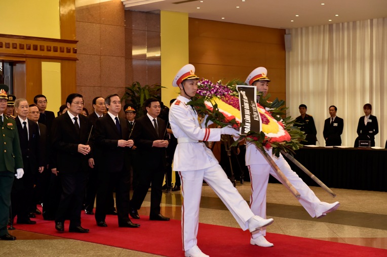 Xin kính cẩn vĩnh biệt đồng chí, nhà lãnh đạo xuất sắc của Đảng và Nhà nước ta, người Anh vô cùng thân thiết, gần gũi của Chính phủ, của người dân và doanh nghiệp. Xin hứa với đồng chí, Chính phủ sẽ luôn kiên định mục tiêu xây dựng Chính phủ liêm chính, kiến tạo, hành động, phục vụ nhân dân, đồng hành cùng doanh nghiệp”.