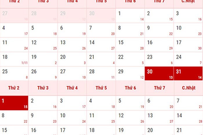 Cụ thể, lịch nghỉ Tết Âm lịch 2019 được tính từ thứ hai 4/2/2019 (30 tháng Chạp năm Mậu Tuất) đến hết thứ sáu 8/2/2019 (mùng 4 tháng Giêng năm Kỷ Hợi). Như vậy, tính cả thứ bảy, chủ nhật, dịp Tết Âm lịch có tổng cộng 9 ngày nghỉ.