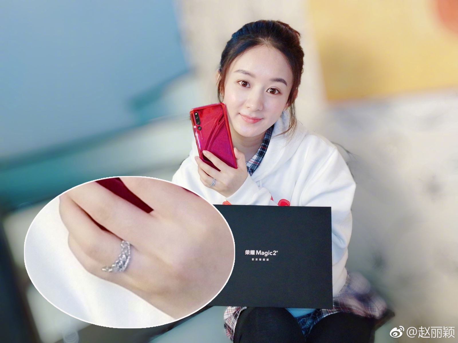 Cách đây chỉ ít giờ, nàng "Sam Sam" đã có bài đăng đầu tiên sau gần 1 tuần công bố chuyện tình cảm. Dù đây chỉ là bài đăng quảng cáo từ phía nhãn hàng, nhưng điều mà dân tình chú ý chính là chiếc nhẫn sáng lấp lánh trên tay nữ diễn viên họ Triệu. Trang Sina, QQ đều đặt nghi vấn liệu đây có phải là chiếc nhẫn mà Phùng Thiệu Phong đã cầu hôn cô "trong truyền thuyết" hay không, bởi từ trước đến nay Triệu Lệ Dĩnh rất ít khi đeo trang sức.