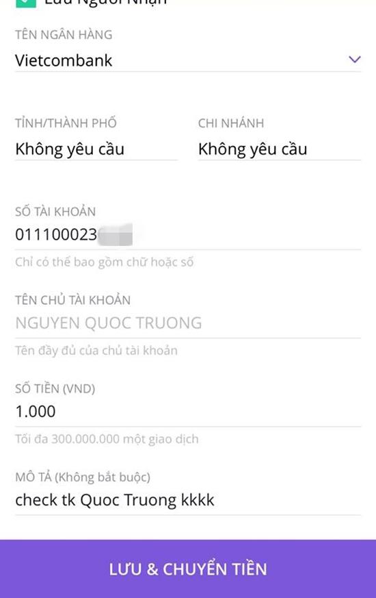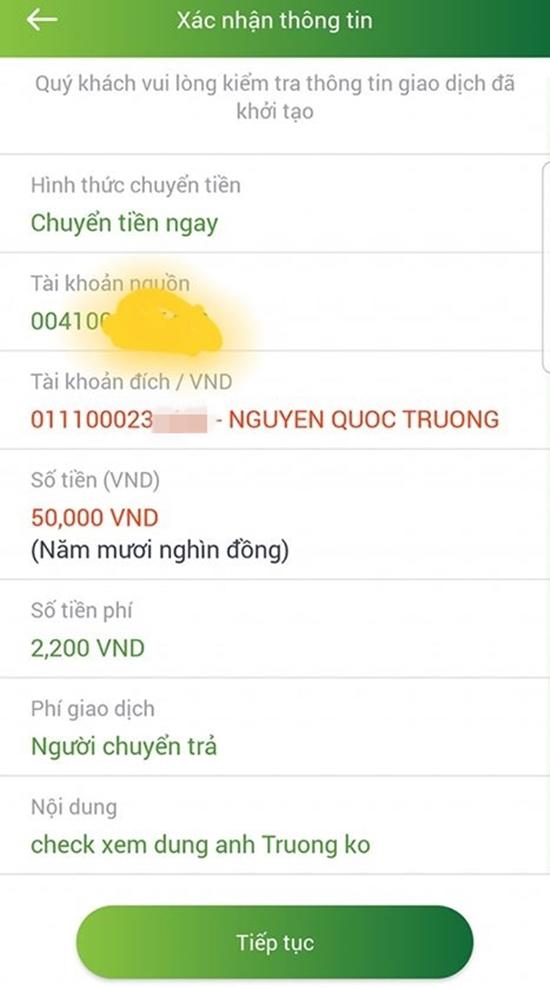 Cư dân mạng nhanh tay nhanh mắt đã nhập số tài khoản hiển thị trên màn ảnh và thử chuyển tiền để xem đó là số tài khoản của ai. Càng bất ngờ hơn khi hệ thống internet banking đã báo số tài khoản được nhập vào có chủ sở hữu là Nguyễn Quốc Trường - họ tên thật của nam diễn viên đóng vai Vũ. Các "thánh lầy" cư dân mạng còn nhập nội dung chuyển tiền là: "Check (Tạm dịch: Kiểm tra) xem đúng anh Trường không?" "Check tài khoản Quốc Trường."