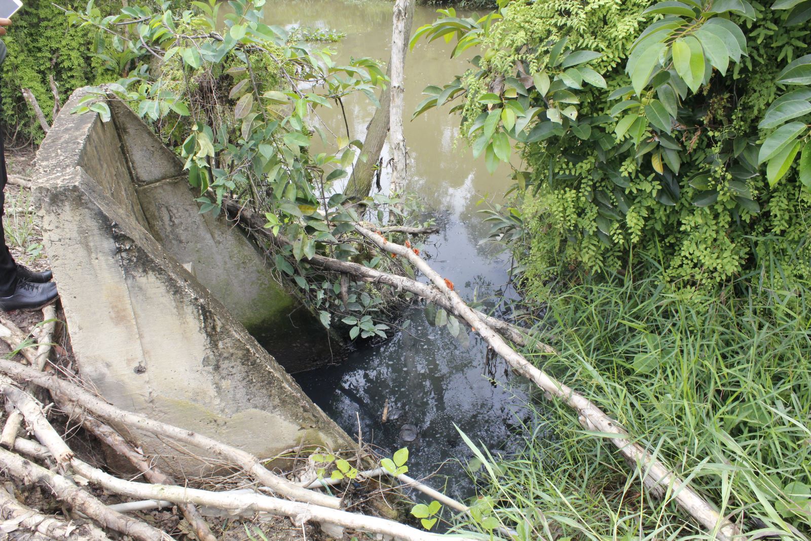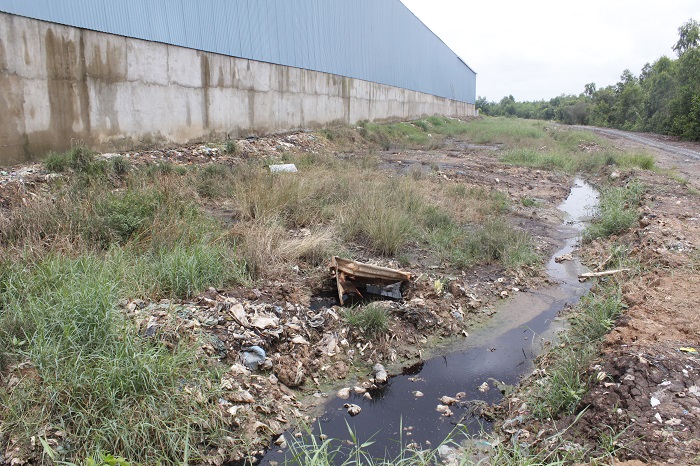 Tại khu vực xung quanh nhà máy xử lý rác Tâm Sinh Nghĩa - Long An, rác thải bị bỏ đầy quanh nhà máy, nước từ nhà máy chảy ra thành những con lạch nhỏ có màu đen kịt, bốc mùi hôi thối. Không những thế, nguồn nước này lại chảy trực tiếp ra kênh dân sinh mà người dân đang sử dụng.