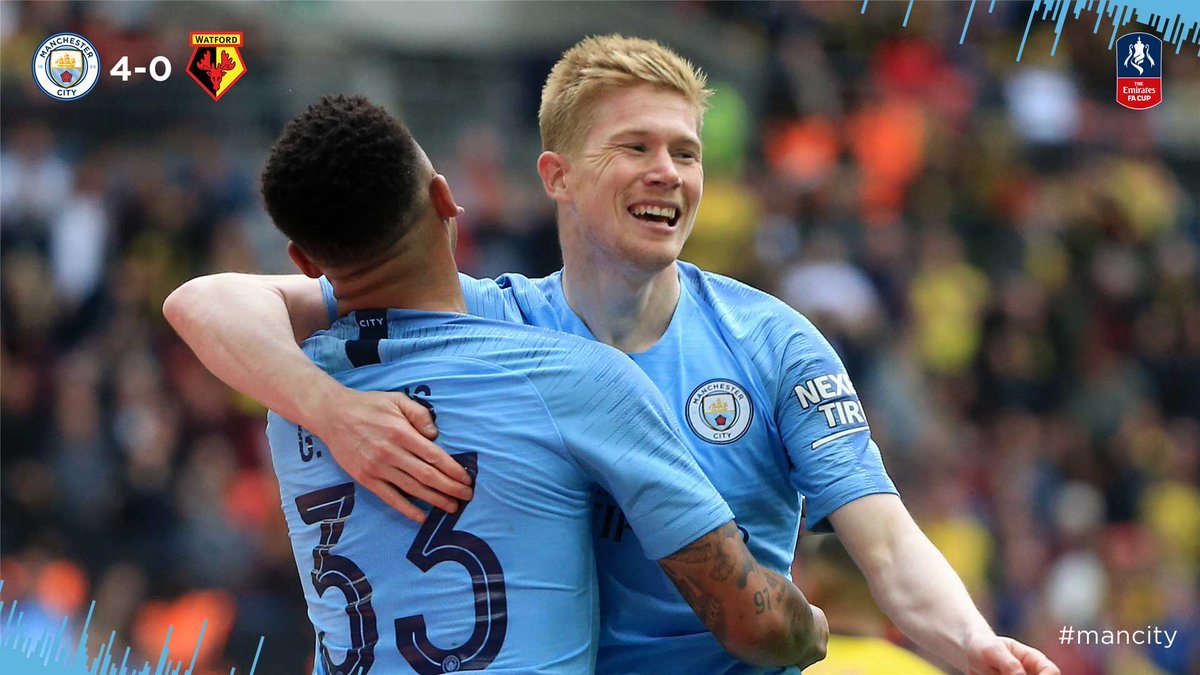 Trong lịch sử bóng đá Anh, chưa đội bóng nào cùng lúc thâu tóm cả Cup Liên đoàn, Ngoại hạng Anh lẫn Cup FA trong một mùa giải. Sự thống trị đó được Man City thể hiện bằng cách đè bẹp Watford sáu bàn không gỡ trong trận chung kết trên sân Wembley.