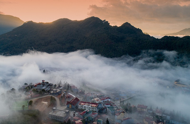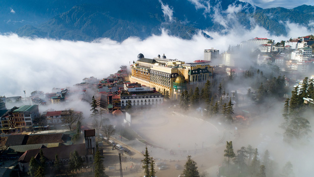 Và nếu bạn là một tay máy tinh ý, có thể chọn ngay những nóc khách sạn tại thị trấn Sa Pa để "săn" và ghi lại những khoảng khắc Sa Pa tuyệt đẹp trong mây.