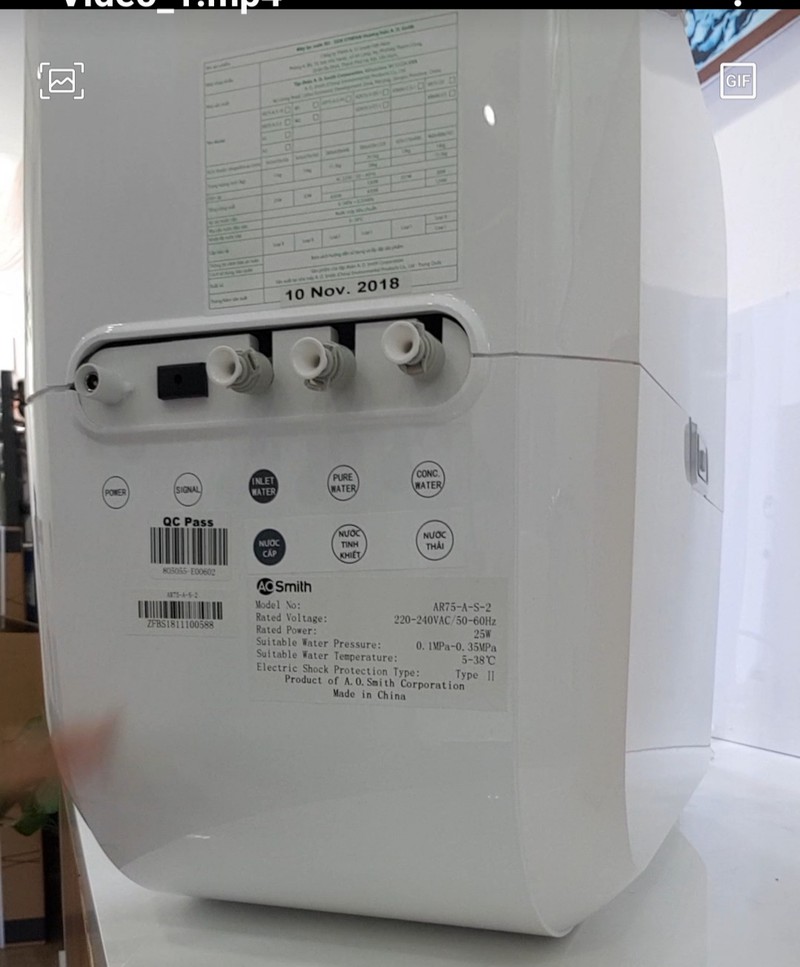 Sau khi tìm hiểu kỹ về loại máy lọc nước mang thương hiệu A.O.Smith đến từ Mỹ này, PV tiếp tục được nhân viên cho xem tem nhãn và nguồn gốc in đằng sau của một chiếc máy lọc nước thì thấy xuất hiện dòng chữ “made in China” đồng thời xuất hiện mã vạch của sản phẩm.