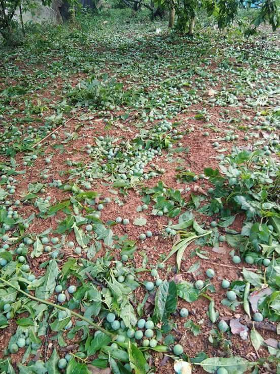 Cơn mưa lớn kèm theo sấm chớp và gió lốc giật mạnh kéo dài khoảng 30 phút, cùng thời điểm này mưa đá xuất hiện ở nông trường Mộc Châu.