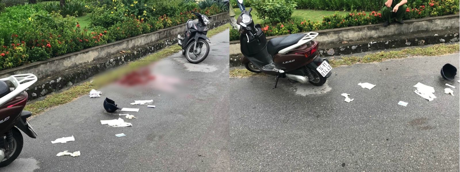 Tại hiện trường, chiếc xe máy của nạn nhân vẫn ở nguyên vị trí, dựng sát với mép đường. Bên cạnh có 2 con dao. Một con dao bầu nằm sát cạnh nạn nhân và một dao bấm rơi cách nạn nhân khoảng 2 mét. Ngay sau đó người dân báo với cơ quan chức năng và phối hợp với cơ quan chức năng đưa nạn nhân đi cấp cứu.