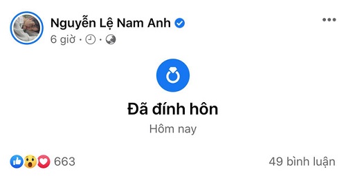 Trên trang cá nhân, Nam Anh chia sẻ thêm: "Hoa đã tìm được bến đỗ, người đã tìm được điểm dừng. Hôm nay tôi cầu hôn người ta đó. Thật sự mọi người không biết người đàn ông này rất tuyệt vời và thuyết phục được trái tim tôi. Một con người rất khốn nạn trong tình yêu, phải nói là hành hạ những ai đang yêu mình. Vậy mà tôi chắc chắn sẽ hạnh phúc. Vì thật sự anh rất tuyệt vời".
